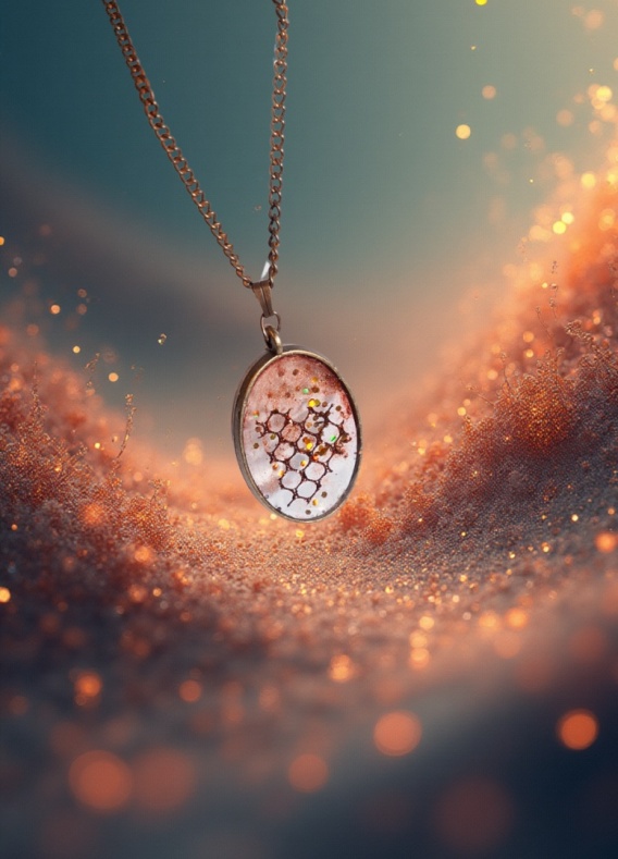 To nie jest biżuteria z fabryki, lecz małe dzieło sztuki, dlatego poszczególne egzemplarze mogą delikatnie różnić się ułożeniem drobinek, siateczki czy kolorem.