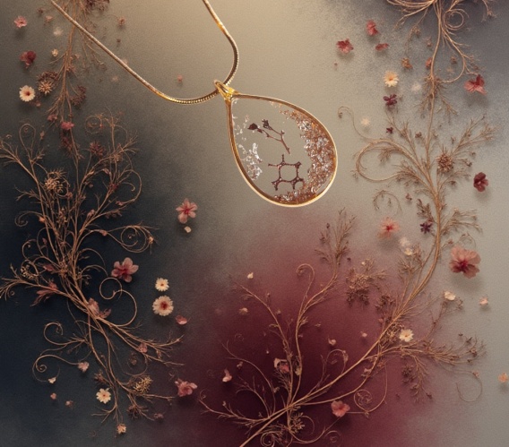 Transparentny naszyjnik z kolekcji Złoty Szept z naturalnym kwiatem, złotem i srebrem ✨ Subtelna kompozycja światła, natury i ciszy.