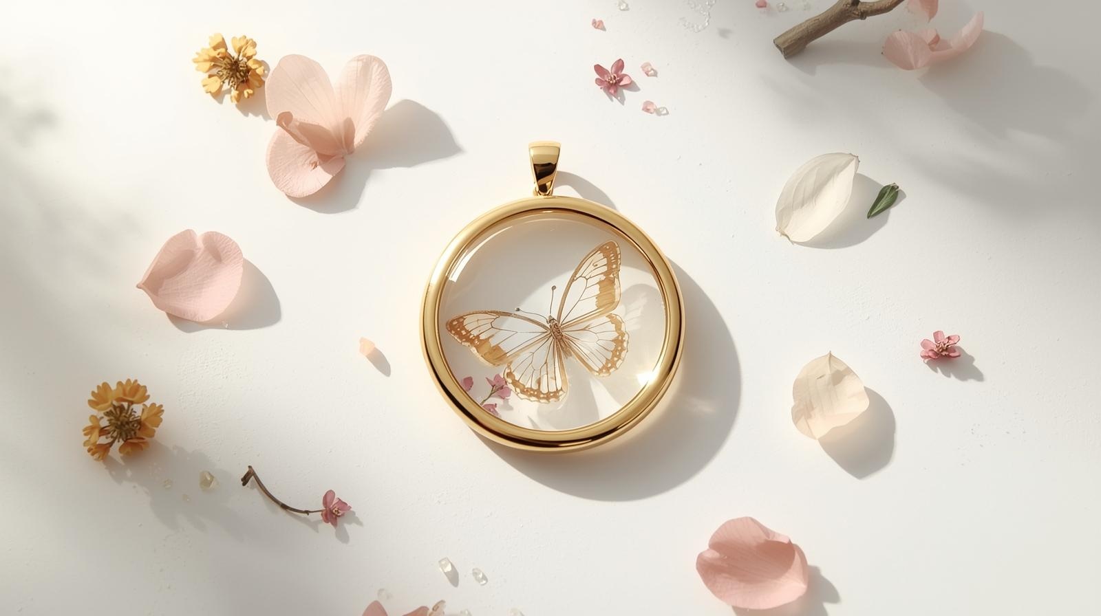 Nasze naszyjniki z motylami powstają z żywicy — tak, aby utrwalić ten delikatny obraz natury w trwałej formie.