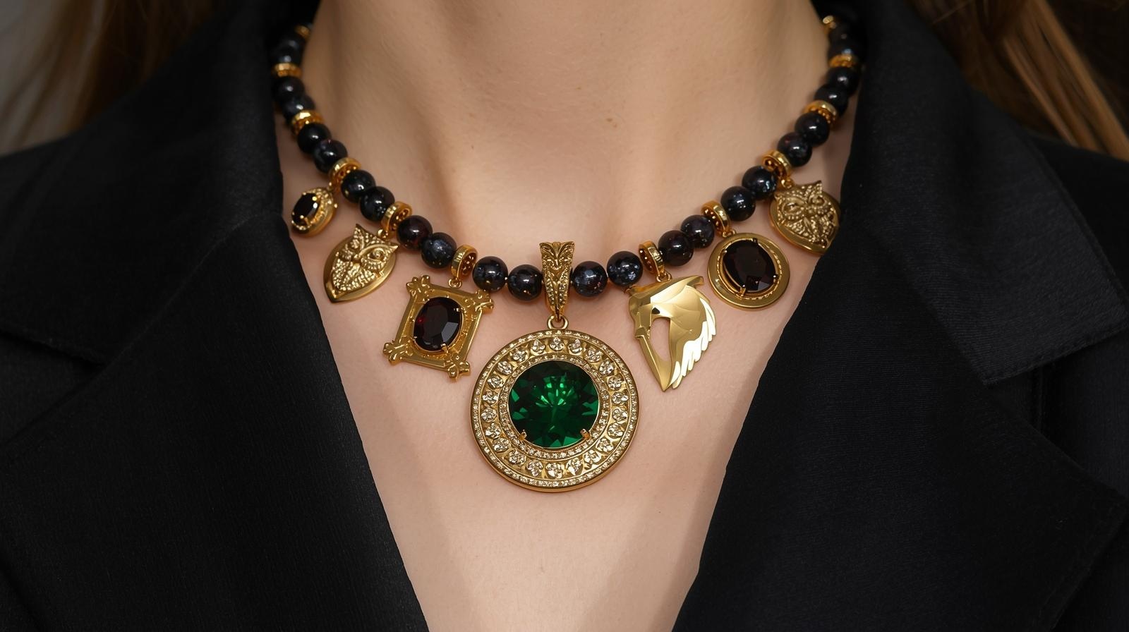 Wyraźnie widoczny jest powrót do biżuterii o mocniejszym charakterze. Medaliony, większe formy i zestawy noszone jako komplet to trend, który dominuje zarówno w stylizacjach świątecznych, jak i sylwestrowych. Szczególnie popularne są motywy symboliczne – zwierzęta, znaki natury i formy inspirowane intuicją oraz siłą wewnętrzną 🐺🦉